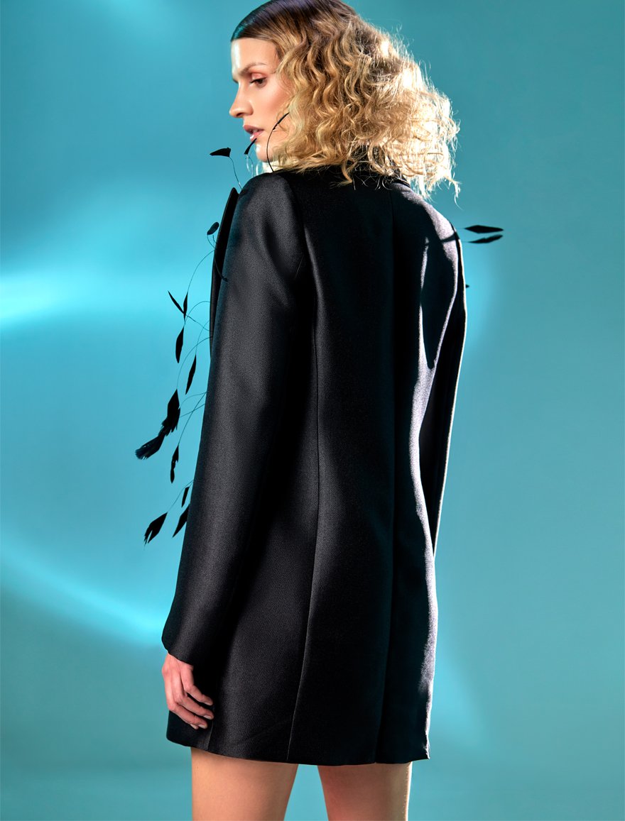 Elevate elegance with our black Mikado jacket dressa perfect blend of sophistication and seduction. Ideal for glamorous nights.