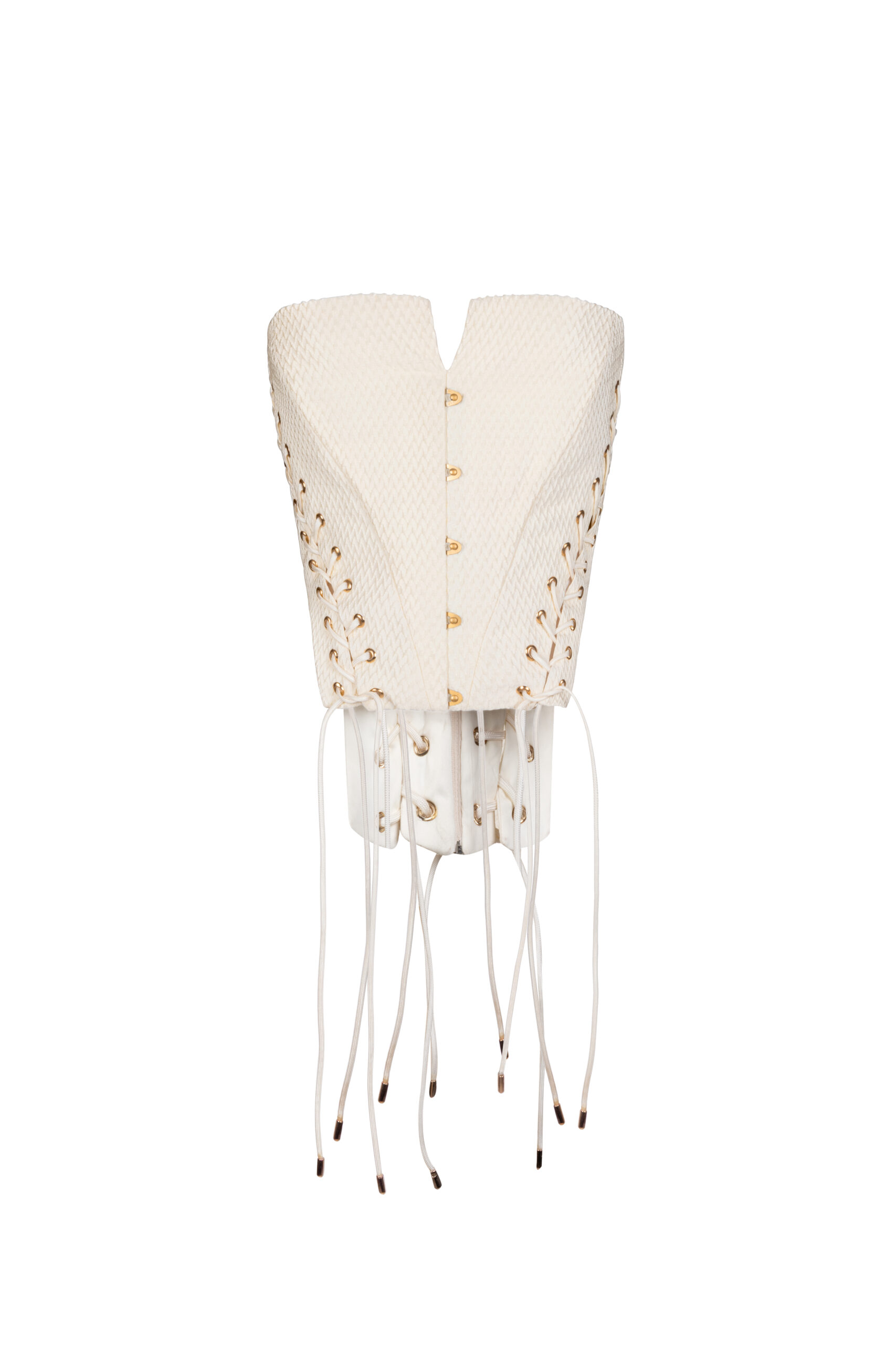 Exude elegance in this cream lace-up corset featuring structured boning and a refined cut.