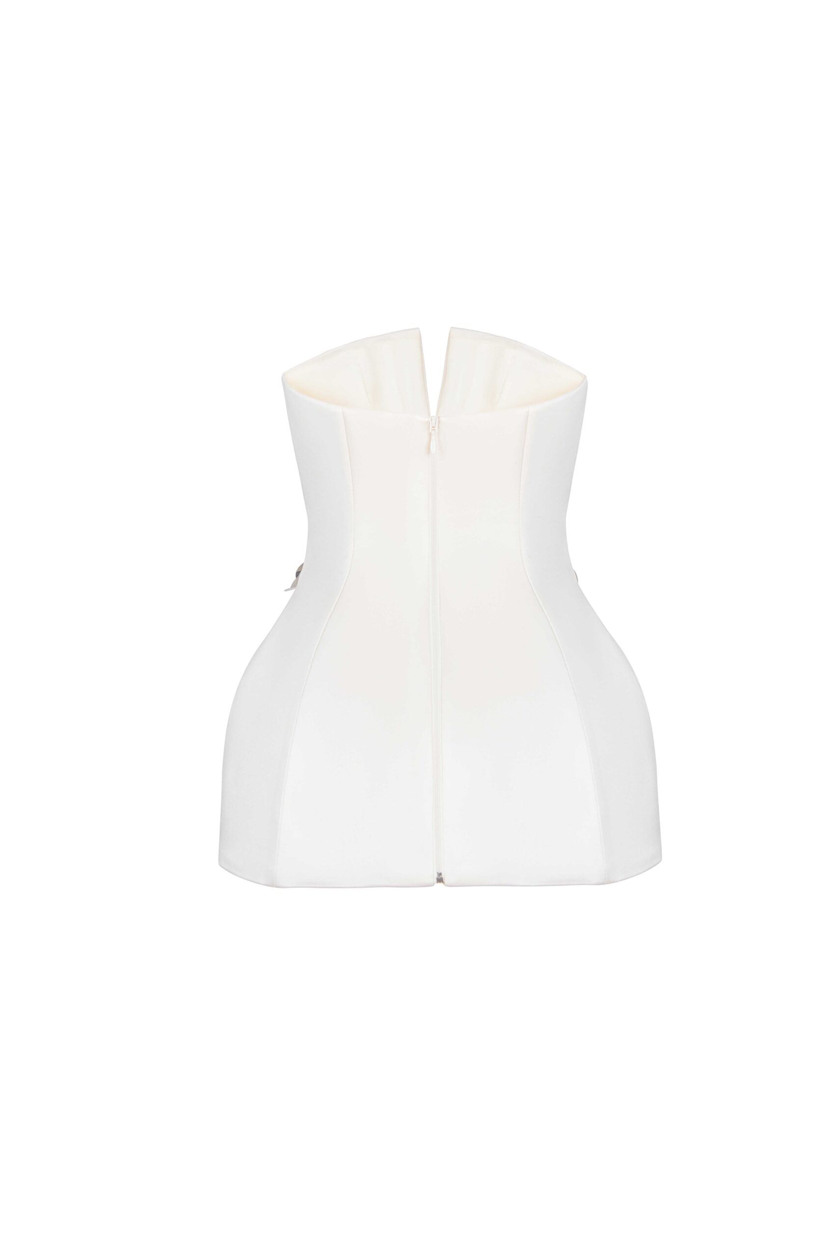 make a statement in a strapless razmir corset with sculptural metallic floral appliqués and a refined central opening.