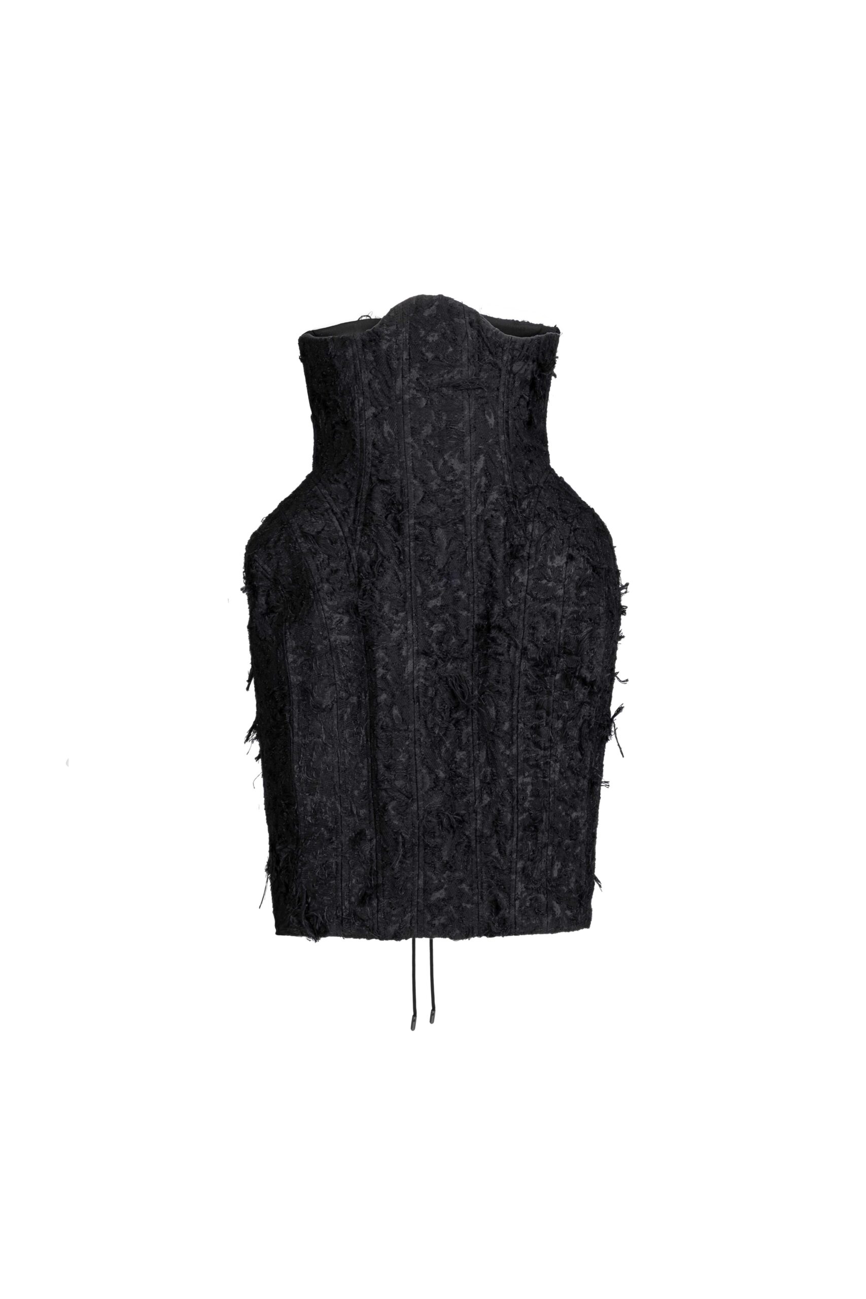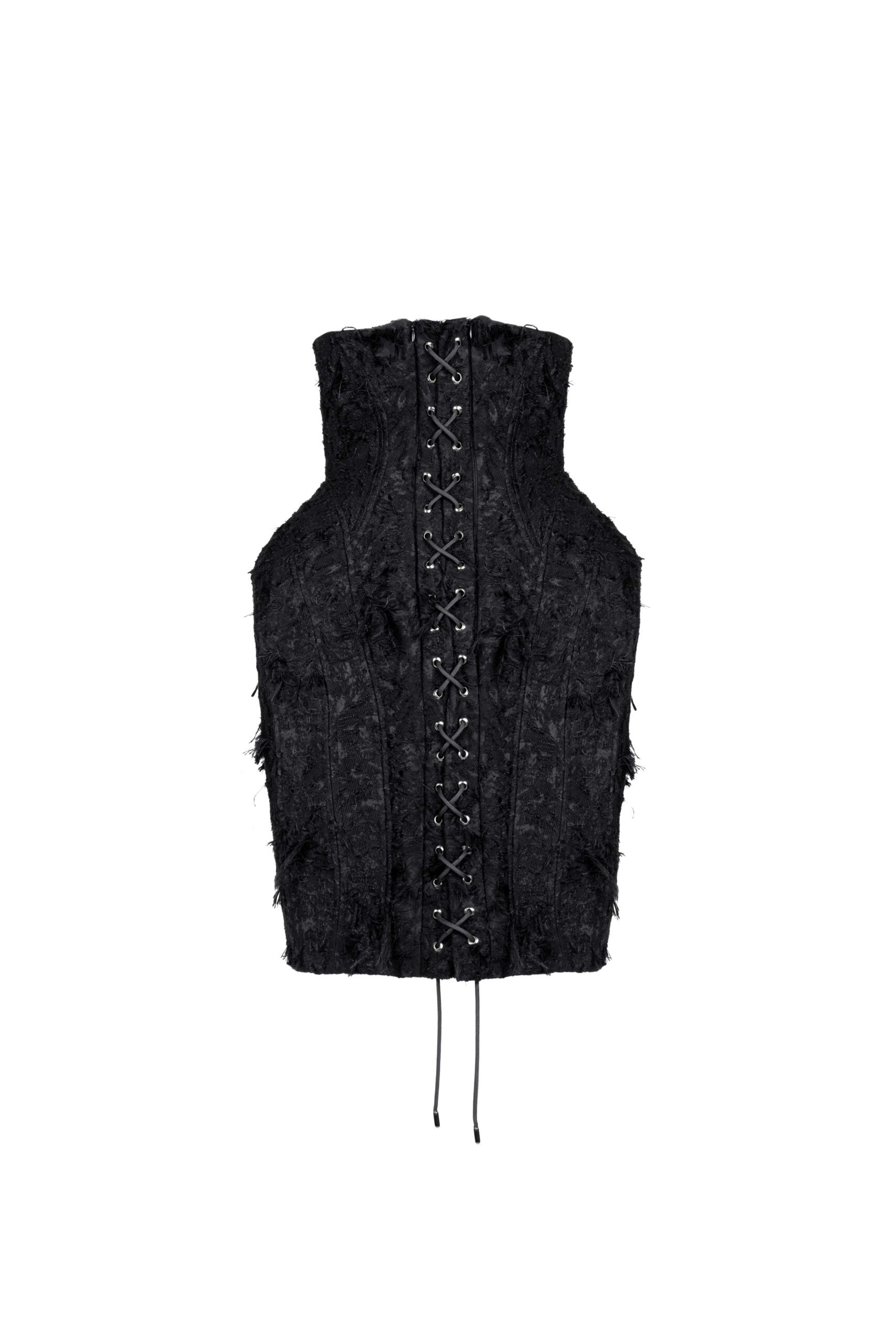 Versatile black corset-style mini skirt-dress with lace-up back detailing, designed for versatile styling.