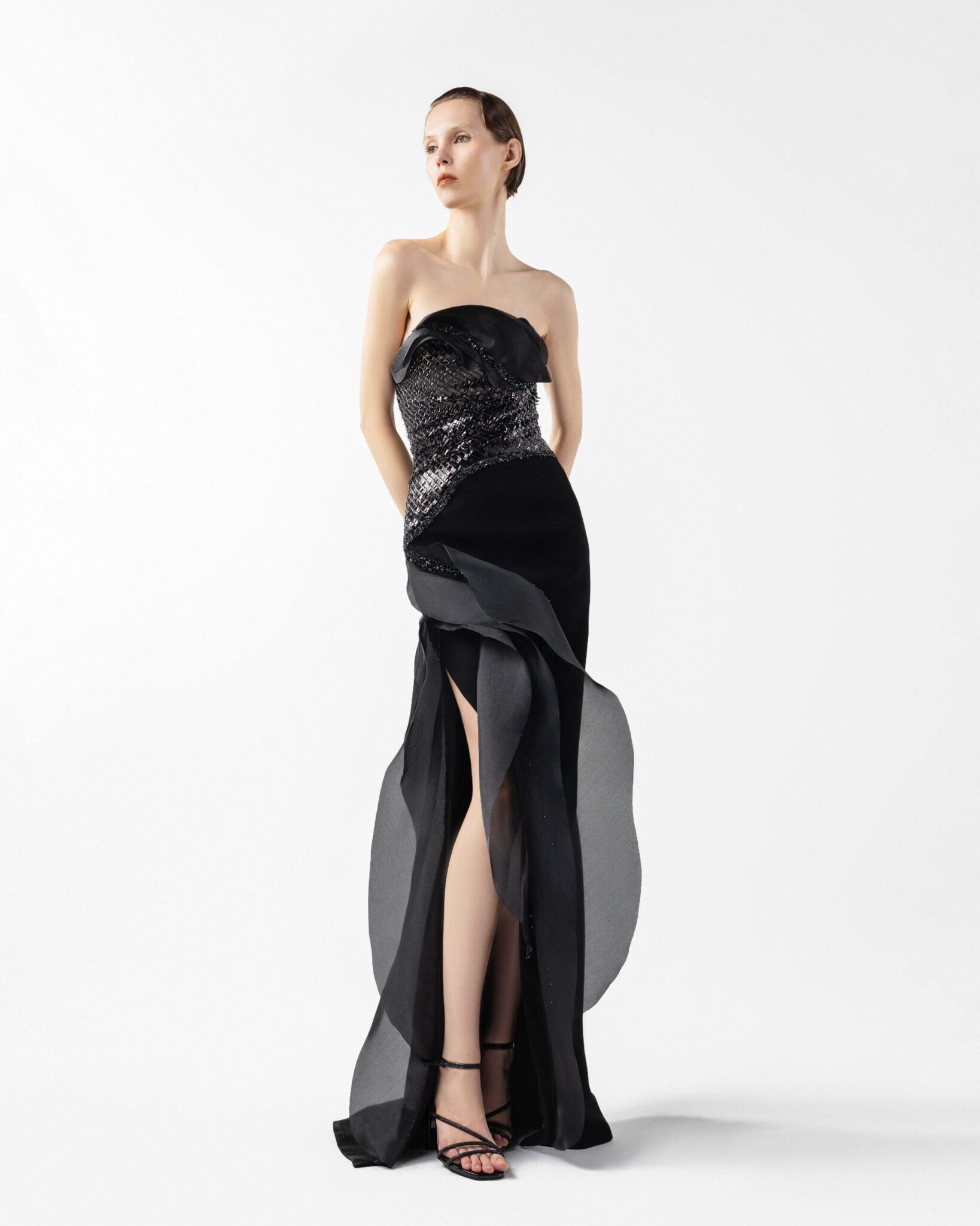 Step into the limelight with our Red Evening Dress, featuring a captivating mermaid cut, tulle sleeve, and organza inserts. A visual delight for galas.