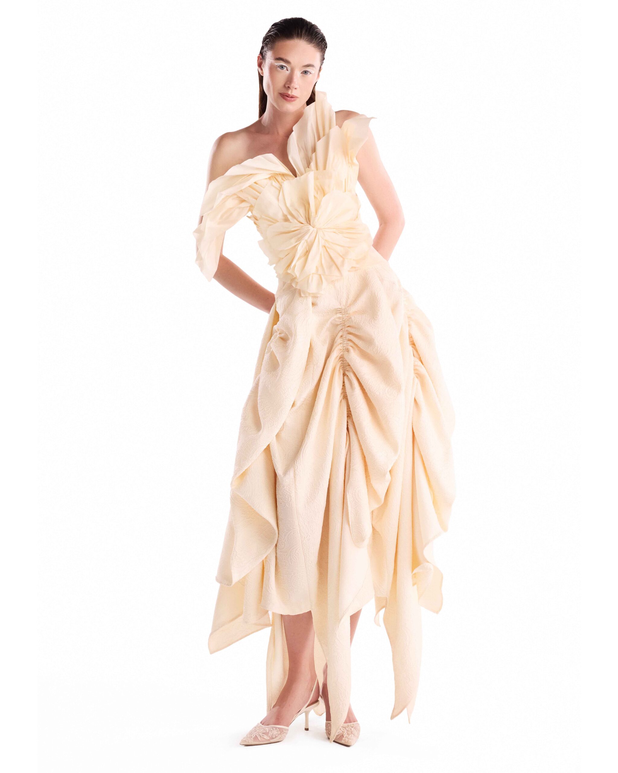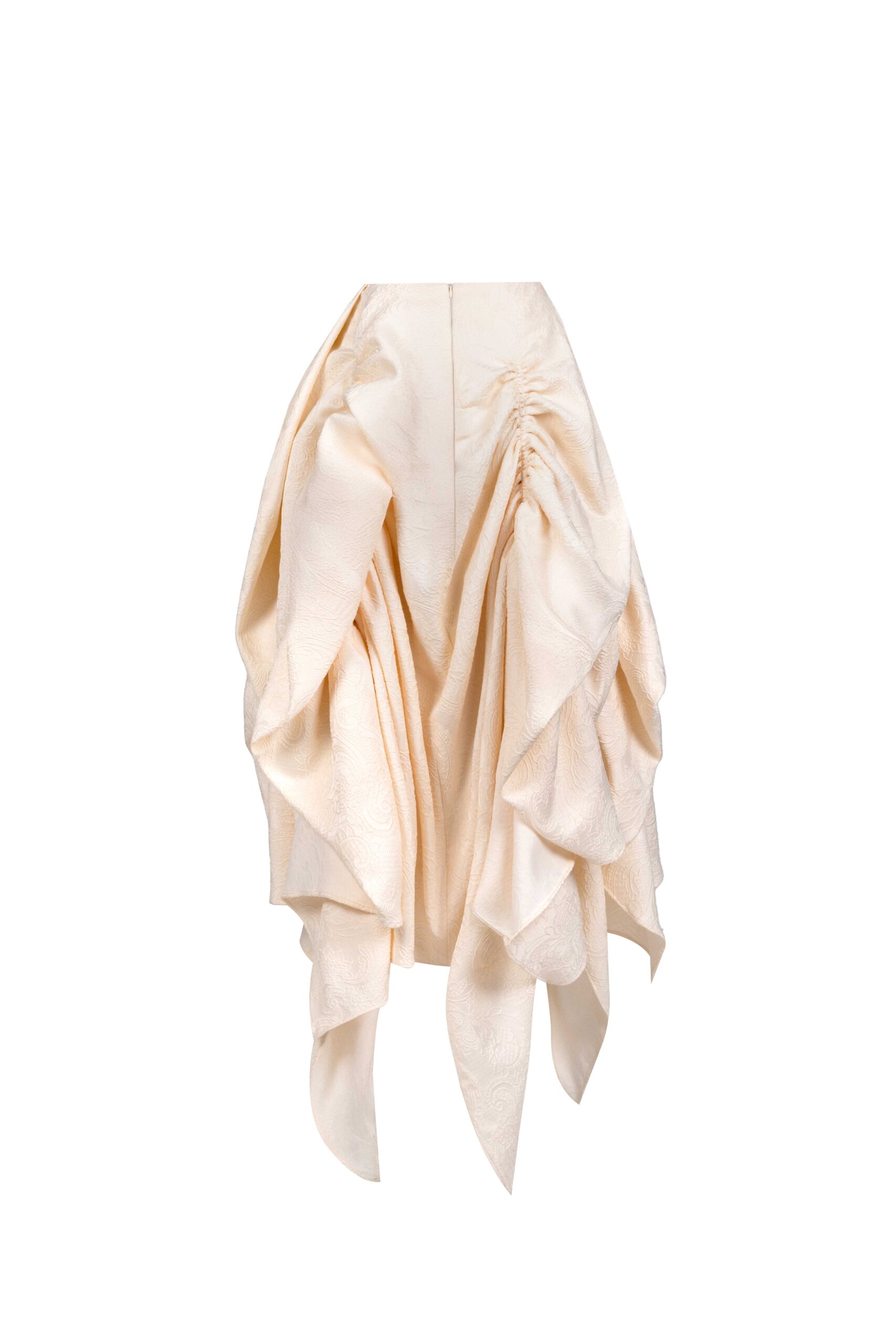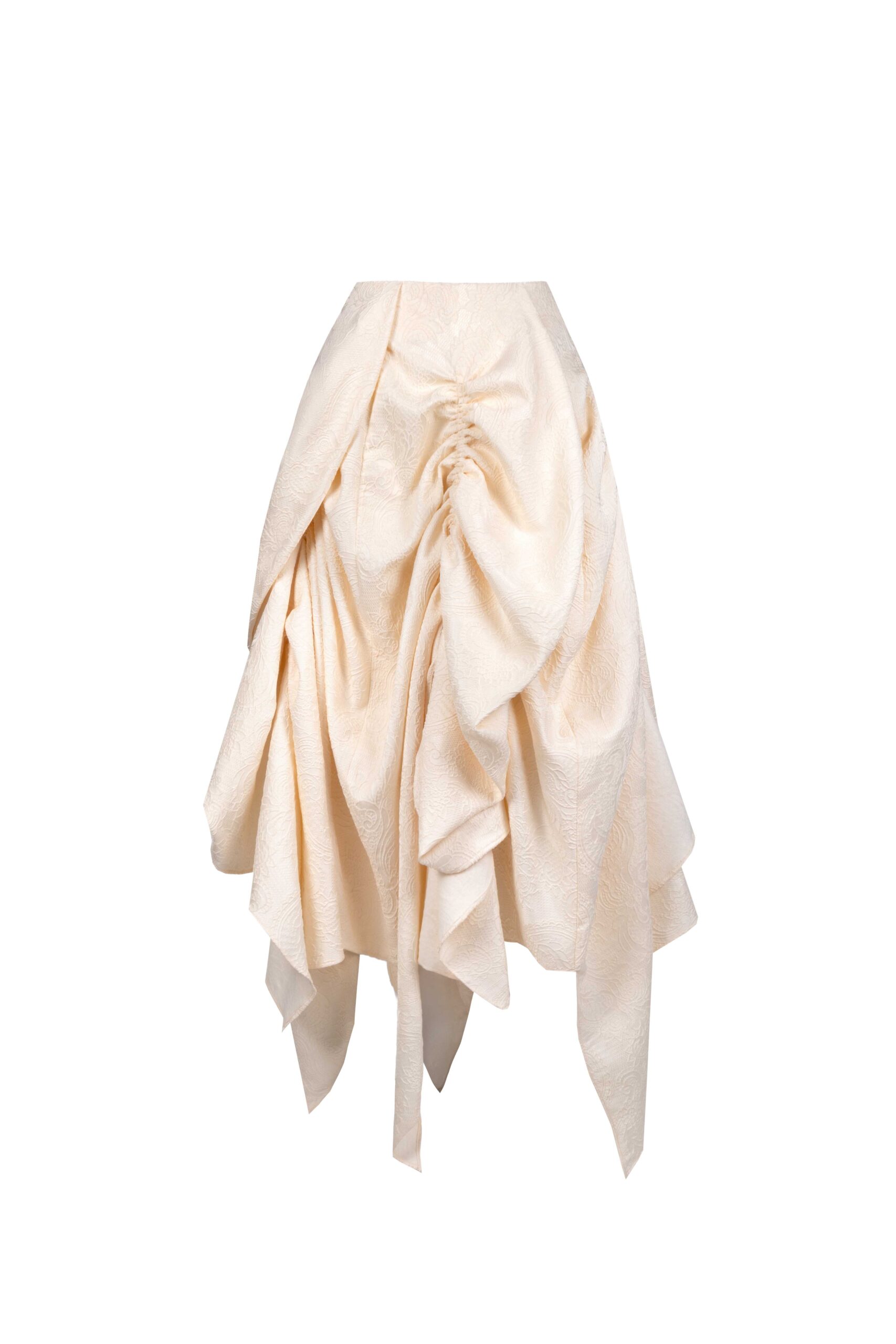 Rendered in textured jacquard, this high-low skirt features gathered draping and a softly sculpted silhouette.